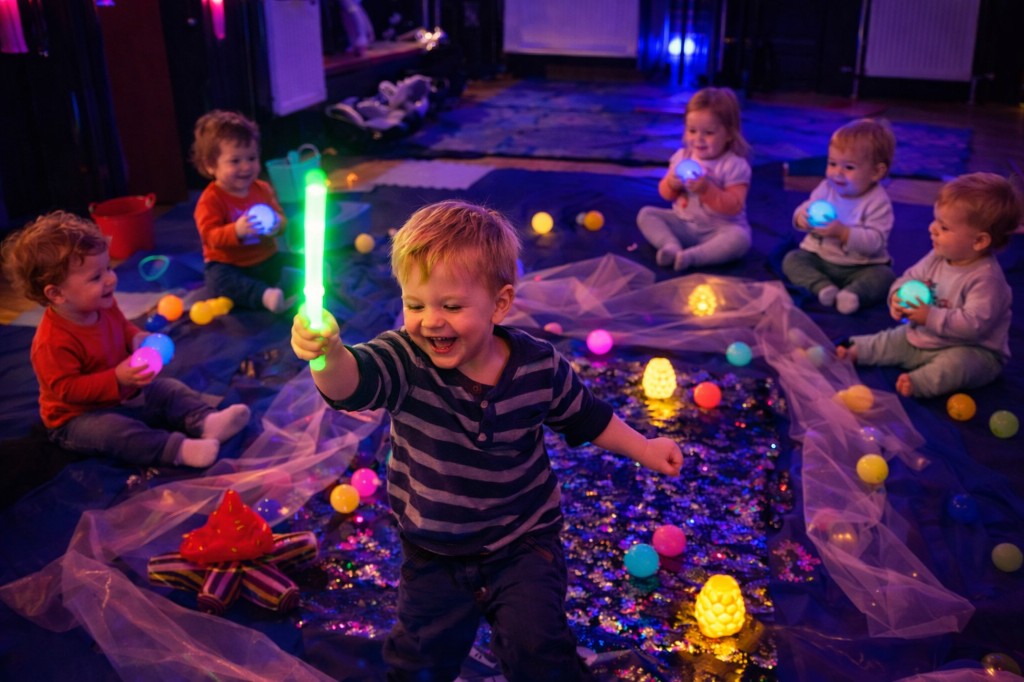 Mesmerizing visual displays with bubbles, projections, and soft lighting to captivate little eyes.